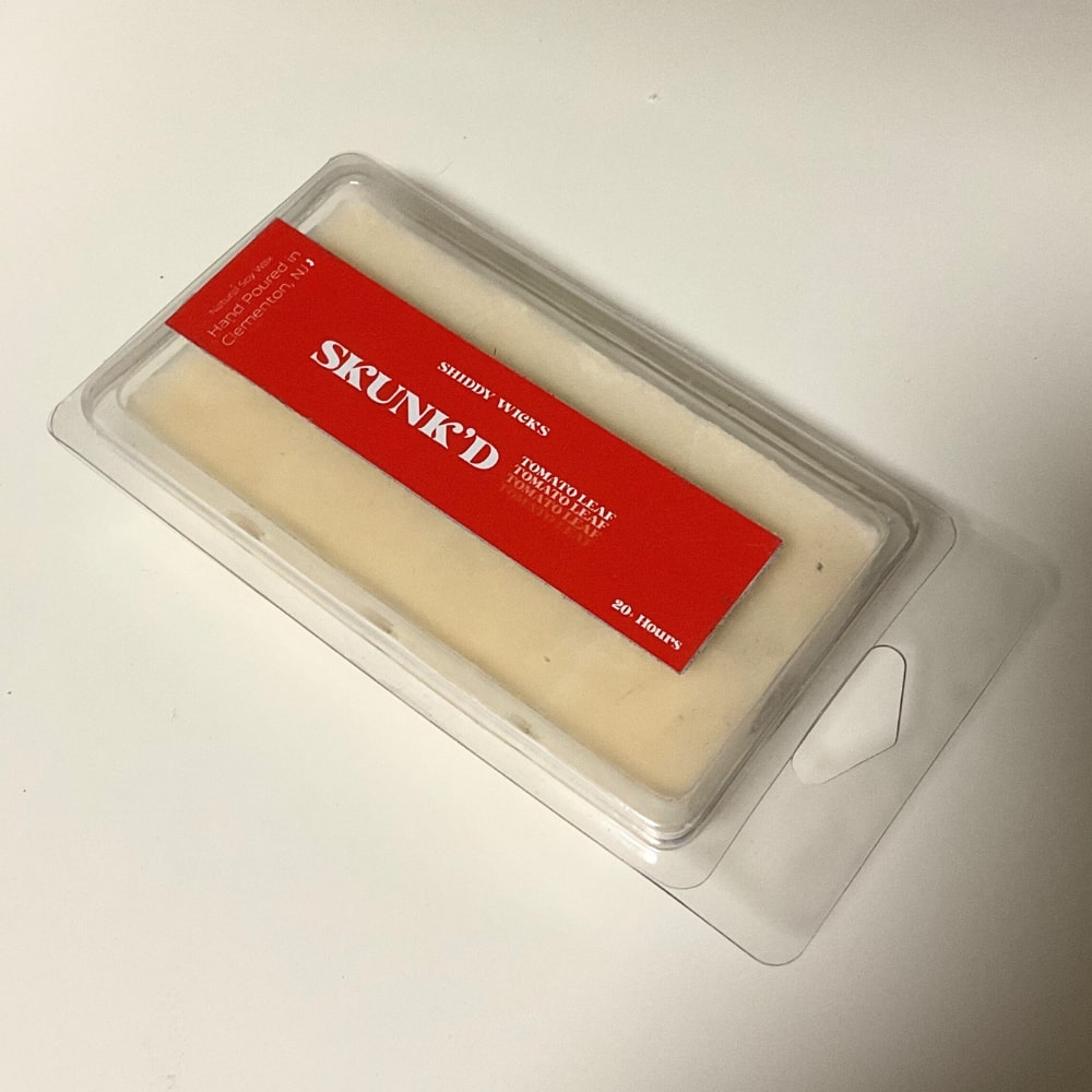 Have you ever been Skunk'd before? Shiddy Wicks has and believe it or not, the smell is quite delectable as notes of Tomato Leaf, Lemon Peel, Lemongrass, Thyme, Basil, Moss, and Green Leaves are sprayed into the atmosphere.